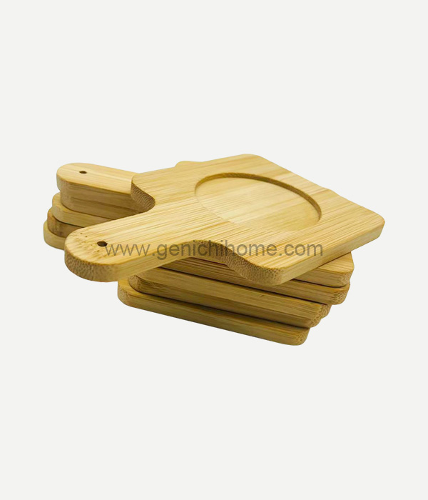 Hjem / Produkter / Matrekvisita / Bambus -coasters / Firkantet dalbane med håndtak